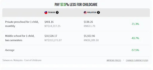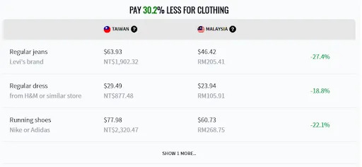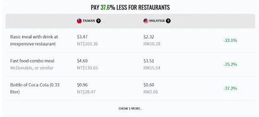 資料來源: www.mylifeelsewhere.com/cost-of-living/taiwan/malaysia